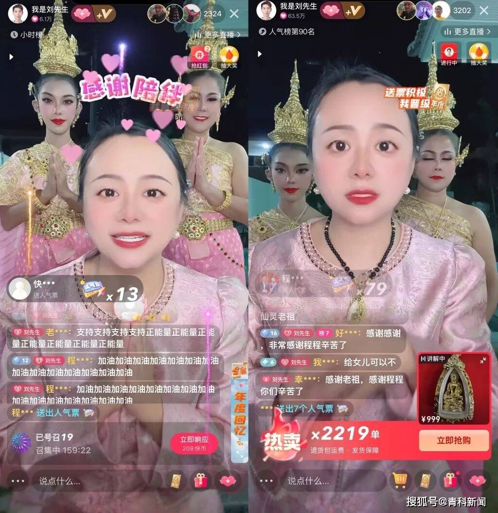 精准锁定老年人群体,虚构“无忧老祖”,直播算卦,预测运势,售卖佛牌……主播“程程正能量”的直播带货套路在近期引发了部分老年人家属的。澎湃新闻连续观看多场直播发现,程程主播团队深谙老年群体心理,通过情感渗透、封建迷信双重洗脑降低老人防备,再以虚构剧情、套路化话术诱导消费,其橱窗中售卖的999元一件的吊坠,目前已售900余件。