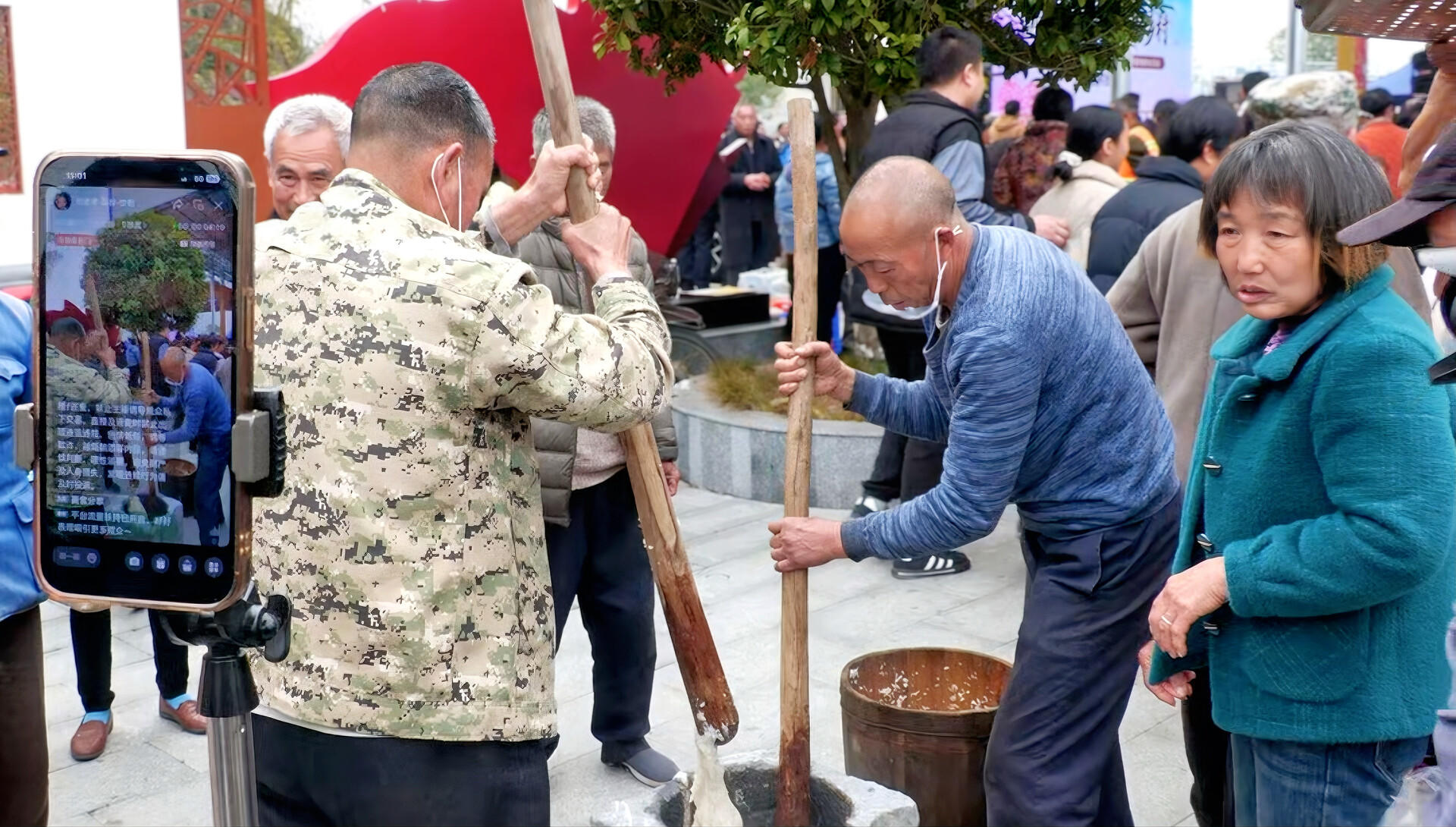 广场一隅,村民自发组织的打糍粑、分享糯米饭活动,也被主播纳入直播镜头,原生态的乡村场景与烟火气息,吸引网友纷纷留言互动。不少村民被直播氛围吸引,驻足围观农产品、咨询购买,村民王大哥更是认真观摩学习直播技巧。