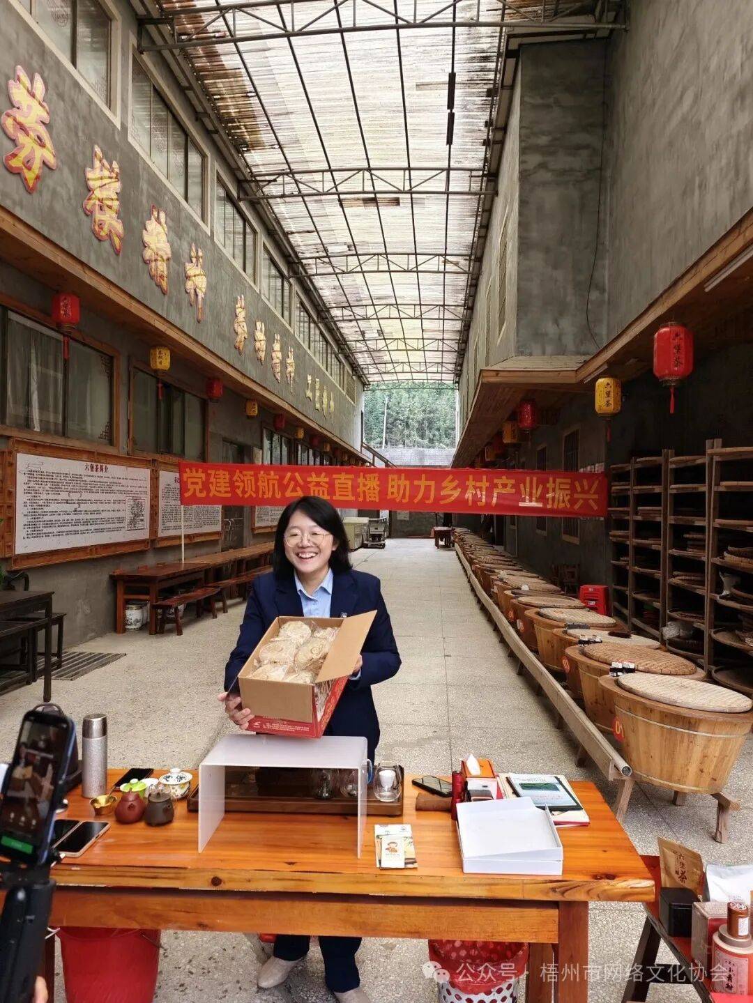 伟德国际(bevictor·1946)源自英国官方网站-为充分发挥梧州网络人士作用,深入推进网络工作与乡村振兴深度融合发展,2月9日,“情暖六堡·网络助农”梧州市公益直播带货暨网络采风活动在苍梧县六堡镇举行。活动通过“直播带货+网络采风+公益慰问”等形式,拓宽销售渠道,传递社会温情,为乡村振兴注入网络动能,给六堡群众和广大网友送2026年新春的美好祝福!