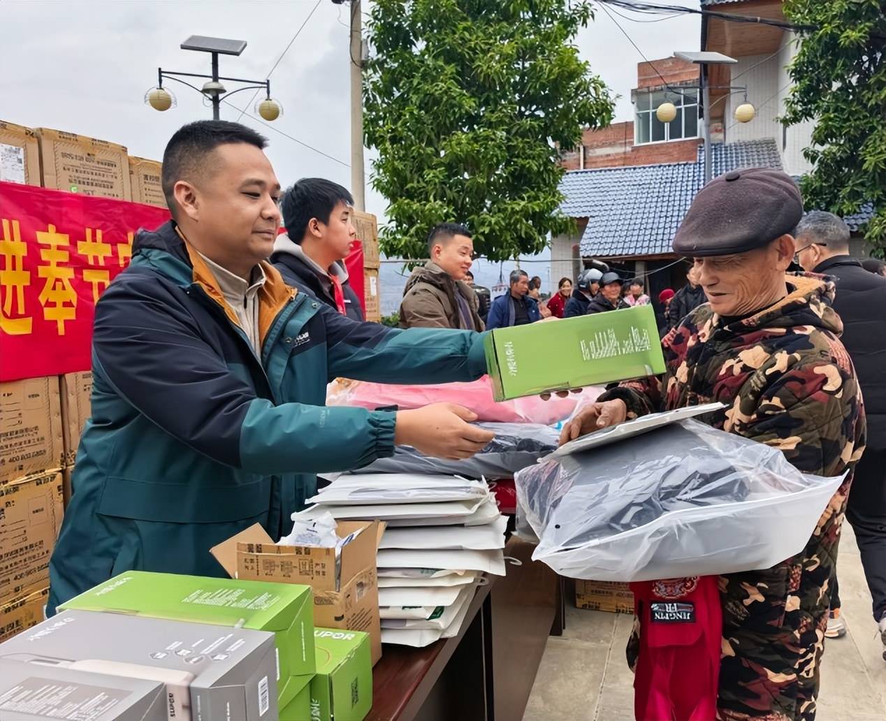 在春节前夕,“与辉同行”团队专程来到奉节安坪镇大保村,为全村65岁以上的老人送去物资。