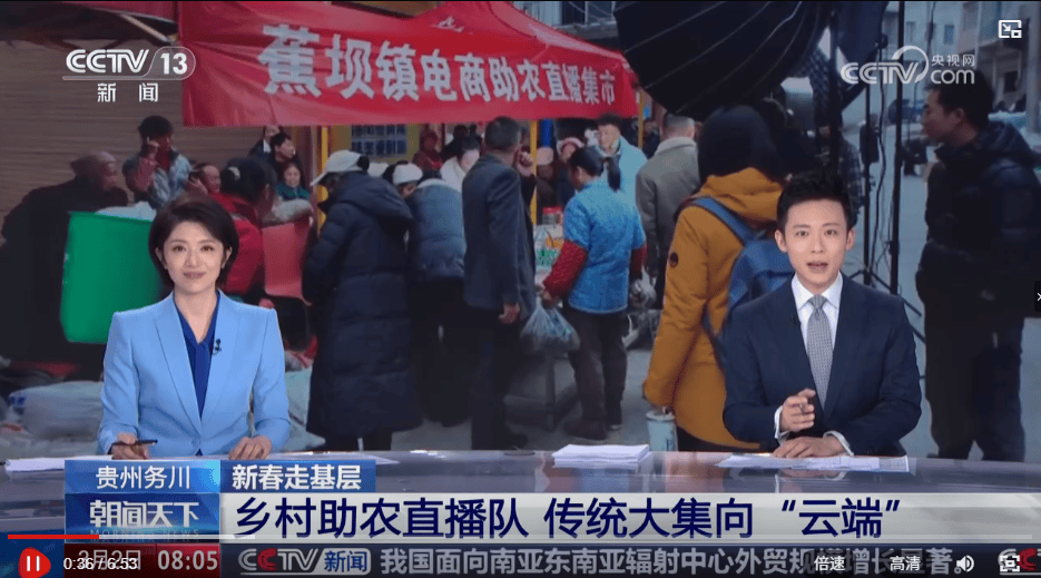 伟德国际(bevictor·1946)源自英国官方网站-2026年3月2日,央视新闻频道《朝闻天下》“新春走基层”栏目以6分53秒时长,重磅报道务川乡村电商助农直播实践,聚焦当地依托“村抖”模式将传统大集搬上云端、推动农特产品出山、赋能乡村振兴的鲜活举措,报道一经播出,迅速引发各类新闻媒体的密集转发与热烈评论,取得了显著的宣传效果和积极的社会影响。