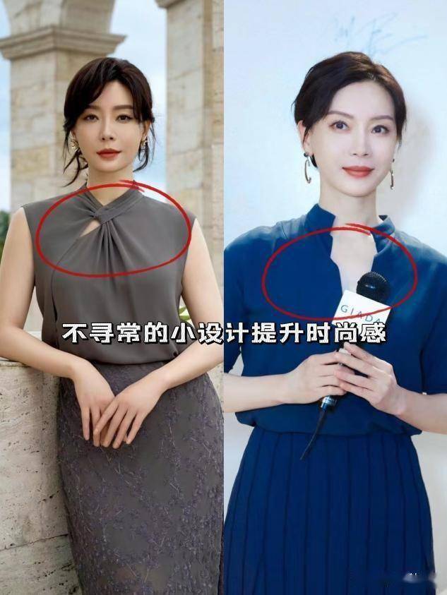此外,陈数还很注重服装的细节设计。比如领口的独特造型、袖口的精致处理等,正是这些精心设计的“小心机”,为她的整体穿搭提供了个人魅力。一件简单的衬衫,可能因为领口处的蝴蝶结设计或者蕾丝花边,而变得与众不同。