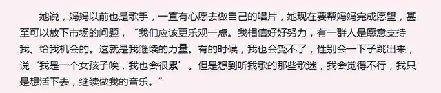这句话戳中了小女孩的心,为了照顾青春的女儿,范母辞掉了驻唱的工作,在幕后帮助着范晓萱,跑公告、洗衣做饭等。
