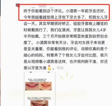 好在,早发现早干预,医生给她制作了一个硅胶牙套,每天晚上戴着慢慢矫正,矫正的事可急不得,要是没有个一年半载很难看到效果。